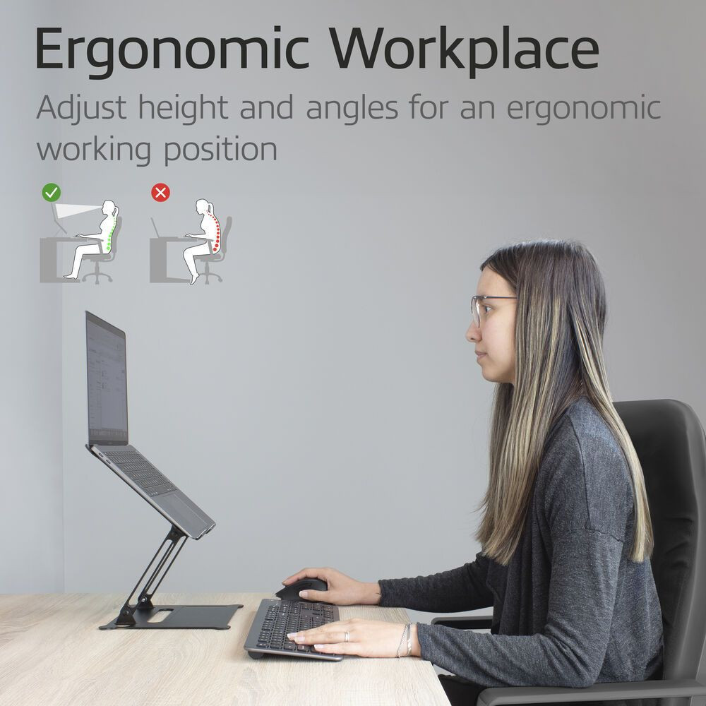 ACT AC8140 Faltbarer Aluminium-Laptop-Ständer mit stufenloser Höhenverstellung