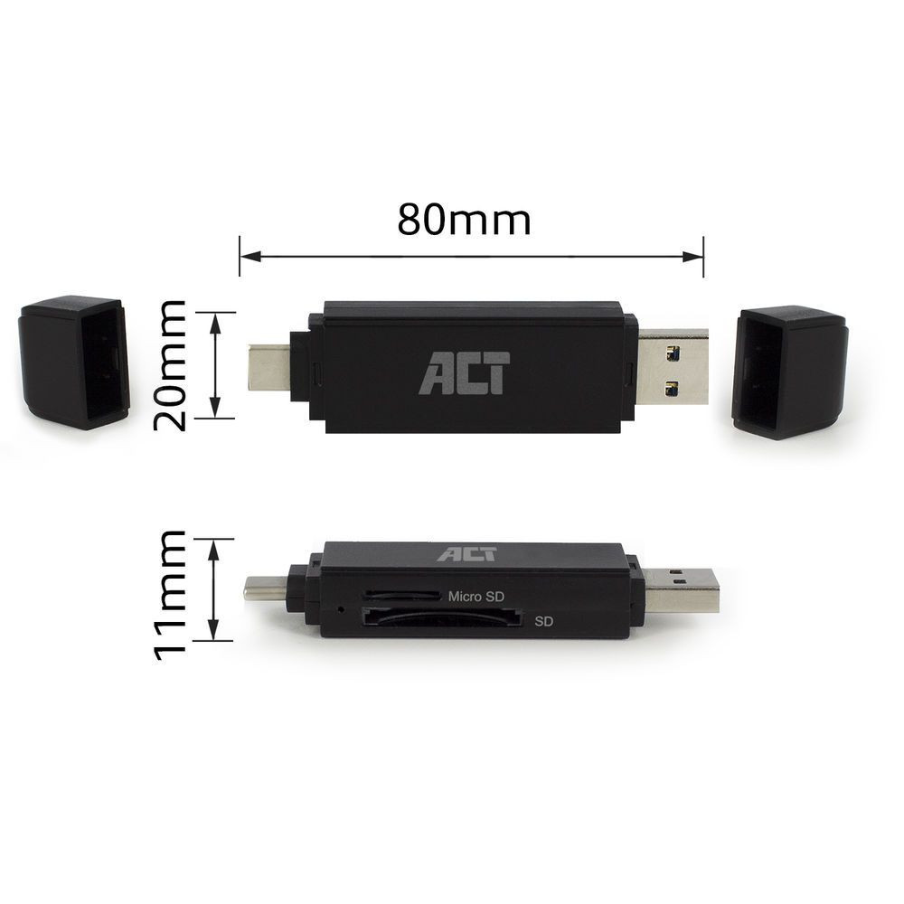 ACT USB-C/USB-A für SD/micro SD-Kartenleser Schwarz