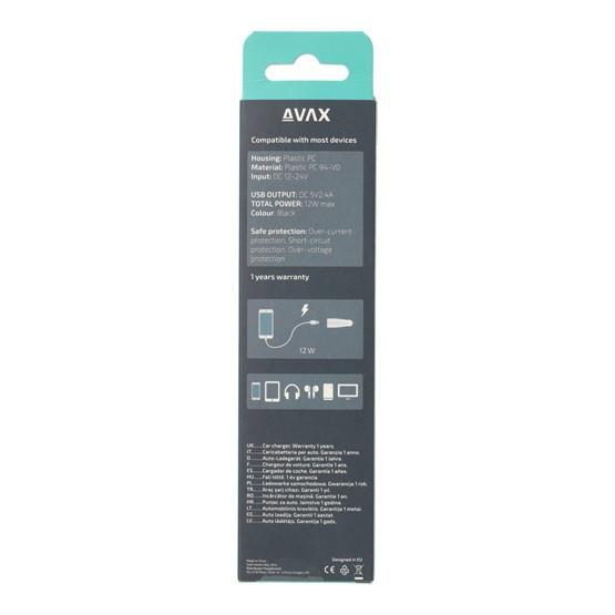 AVAX CC301B CARLY 2x USB A 12W Autoladegerät, Schwarz