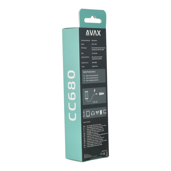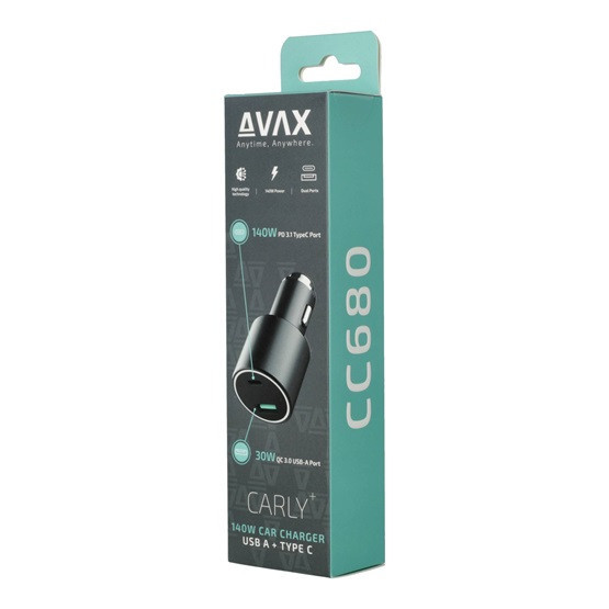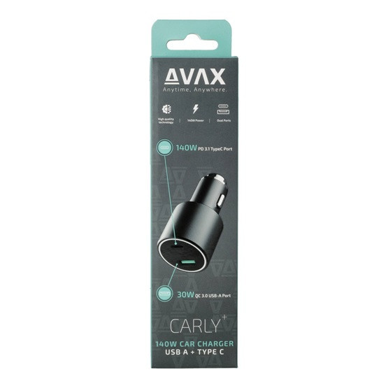 AVAX CC680B CARLY+ USB A + Typ C 140W Autoladegerät, schwarz