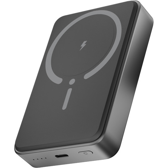 Kabellose Powerbank mit 15W und 20W USB-C Anschluss in Schwarz.