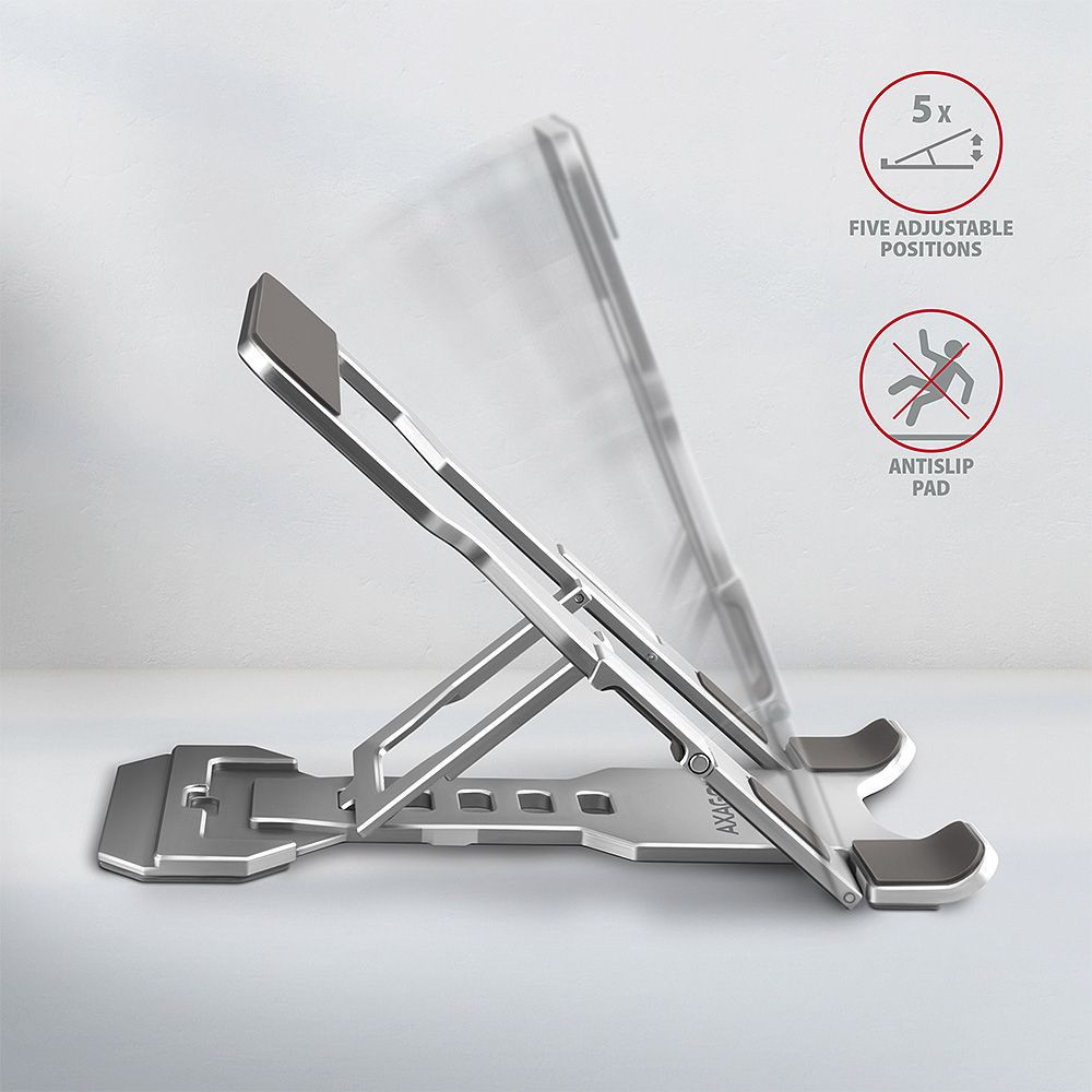 Hochwertiger grauer Mobil- und Tablet-Ständer von AXAGON.