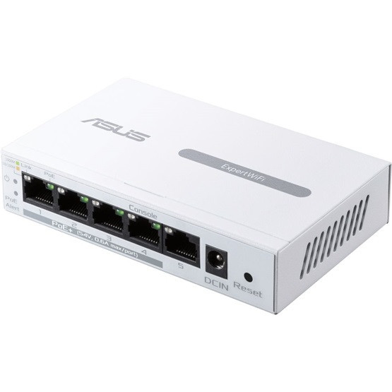 Ein 5-Port-Switch von Asus mit ExpertWiFi und PoE+ Funktion.