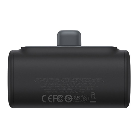 Baseus Kompakte Schnelllade-Powerbank 5000 mAh, 20W USB Typ-C Anschluss, Schwarz