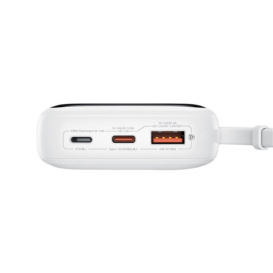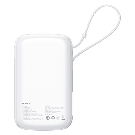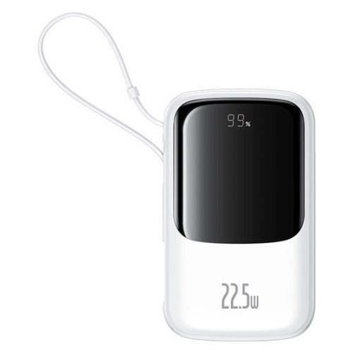 Baseus Qpow Pro+ Schnelllade-Powerbank 10000 mAh, 22,5 W, integriertes USB-Typ-C-Kabel, weiß