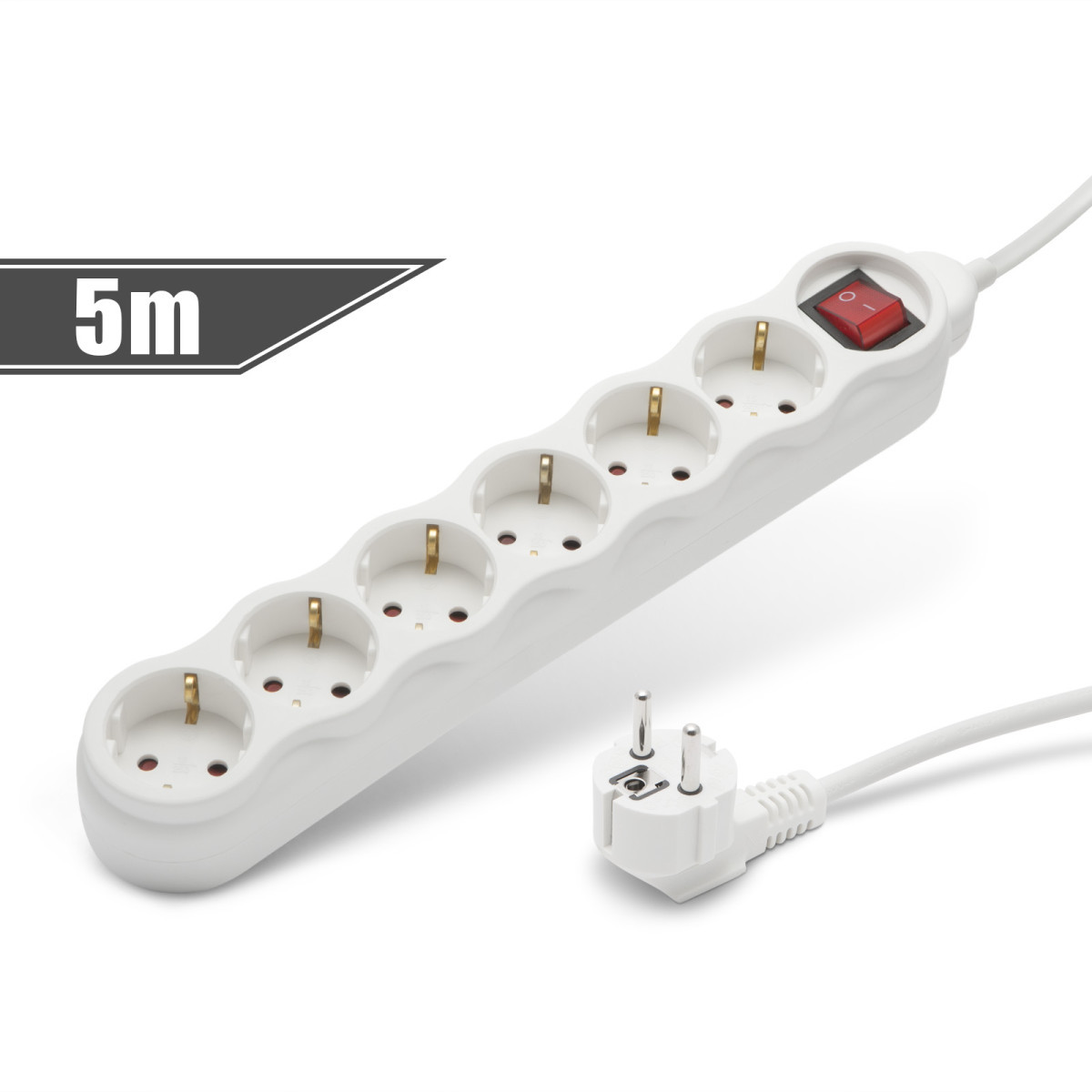 Delight Netzteilsteckdose mit Schalter 6DIN 5m Weiß