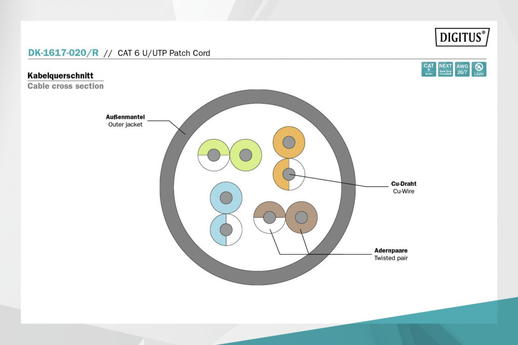 Patch Cable, CAT6, U-UTP, 2m, Red