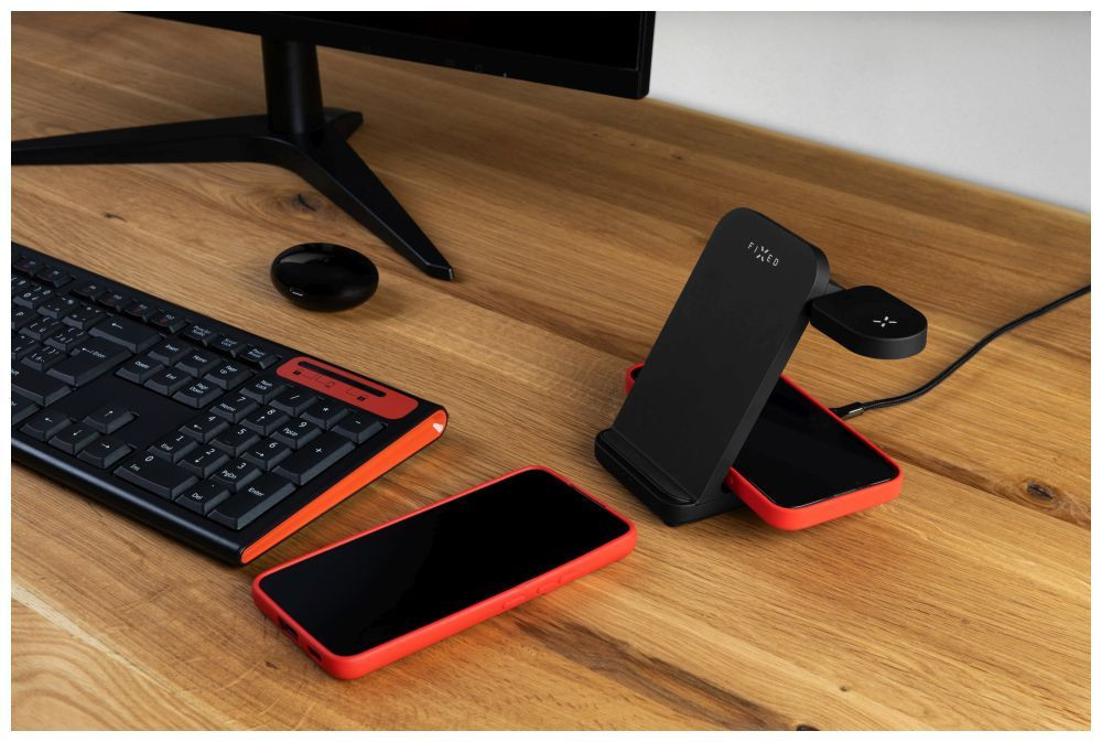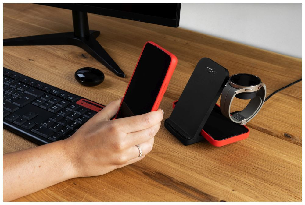 FIXED vezetéknélküli QI töltőállomás 3 eszköz egyidejű töltésére, Samsung Galaxy Watch-hoz is, fekete