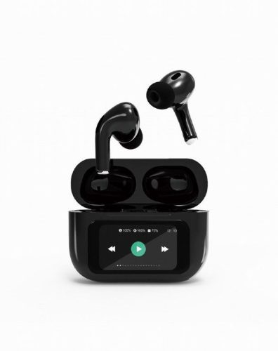 In-Ear-Kopfhörer mit LCD-Display und aktiver Geräuschunterdrückung in Schwarz.