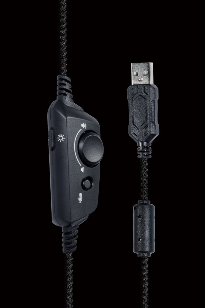 Ein Gaming-Headset mit 7.1 Surround-Sound und RGB-Beleuchtung in Schwarz.