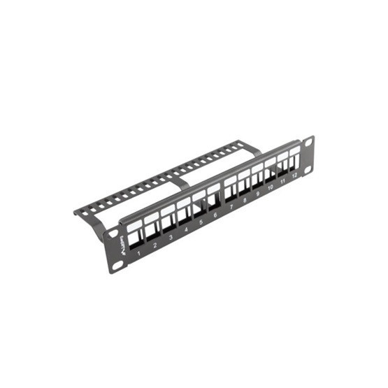 Lanberg Leeres Patchpanel 12 Port 1U 10" mit Entlastung, Schwarz
