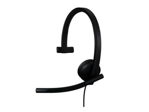 Ein Mono-Headset von Logitech für Teams mit USB-C Anschluss in Schwarz.