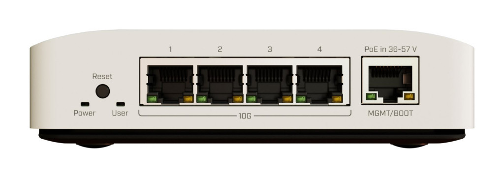 Ein leistungsstarker weißer Mikrotik CRS304-4XG-IN Switch.