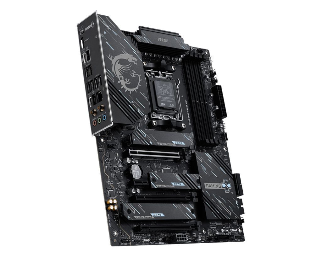 AM5, AMD X870E, 4xDDR5, Max:5600MHz, Max:256GB, 3xPCIE16, 1xPCIE1, 4xSATA3, RAID, 4xUSB, 4xUSB3.2, 2xUSB4.0C, HDMI, 7.1, 5Gb/s LAN, WiFi, Bluetooth, 3xM.2, ATX, Gamer