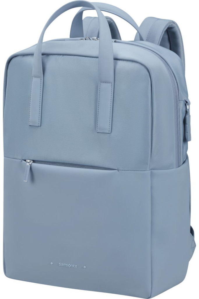 Hochwertiger Laptop-Rucksack von Samsonite in staubigem Blau mit 4 Packungen und Griffen.