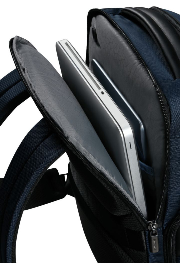 Hochwertiger blauer Rucksack von Samsonite für Laptops bis 14,1 Zoll.