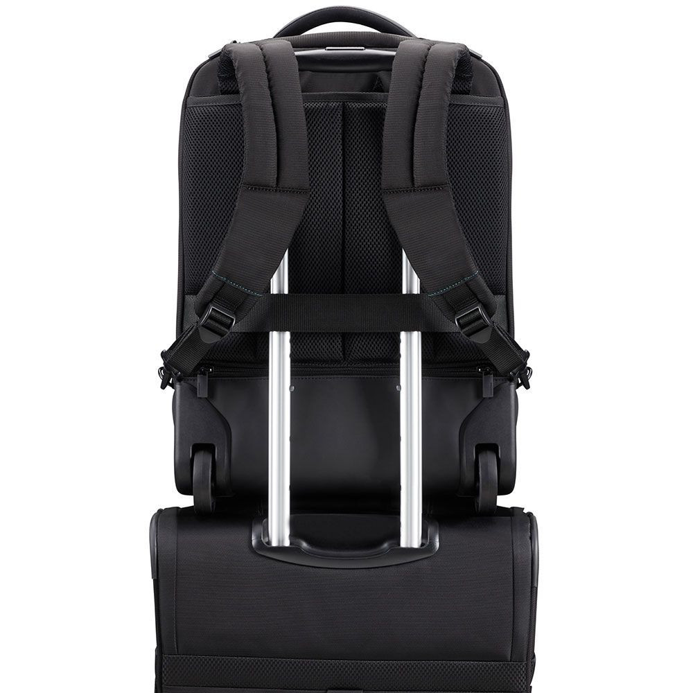 Hochwertiger Laptop-Rucksack von Samsonite mit Rädern in elegantem Schwarz.