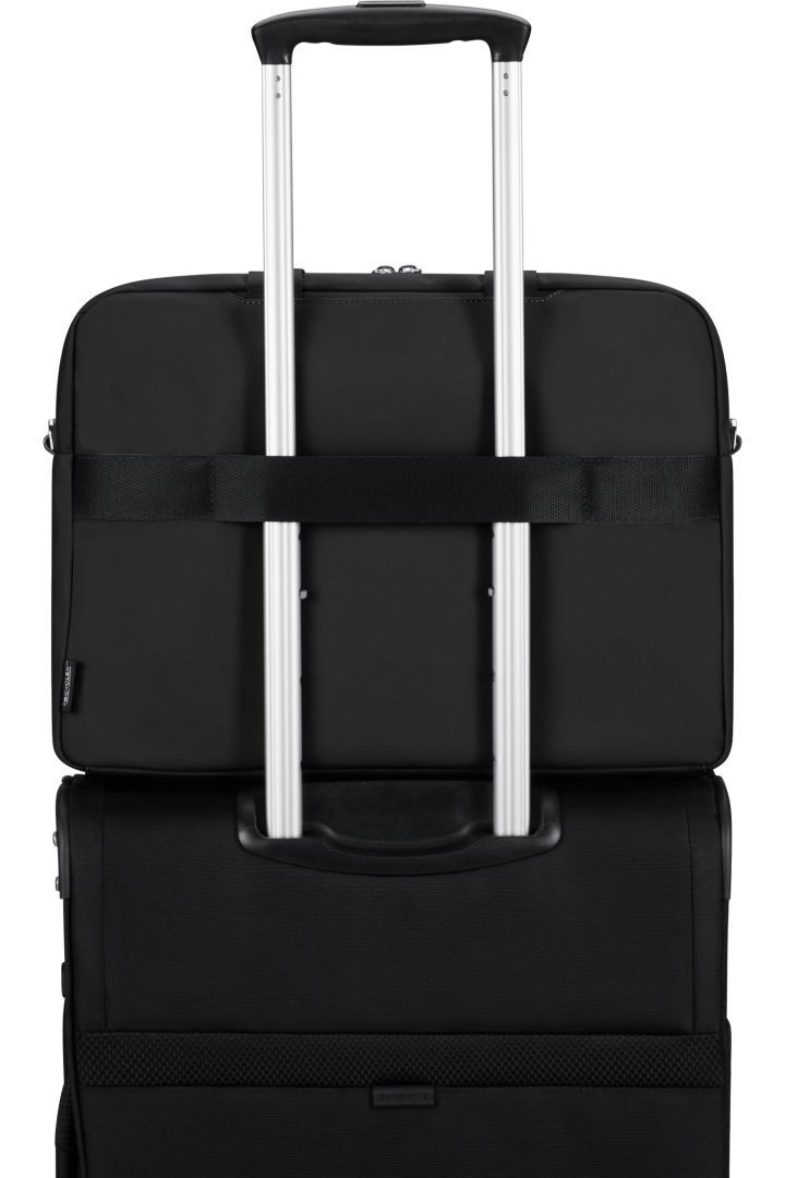 Hochwertige schwarze Laptoptasche von Samsonite mit fortlaufendem Tragegriff.
