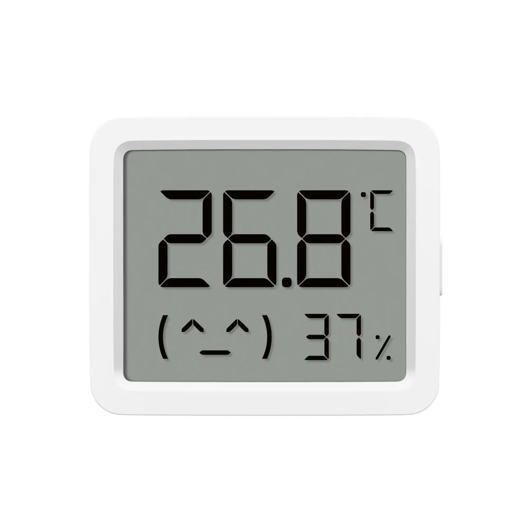 Ein Xiaomi Mi Temperatur- und Feuchtigkeitsmonitor 3 Mini in Weiß.