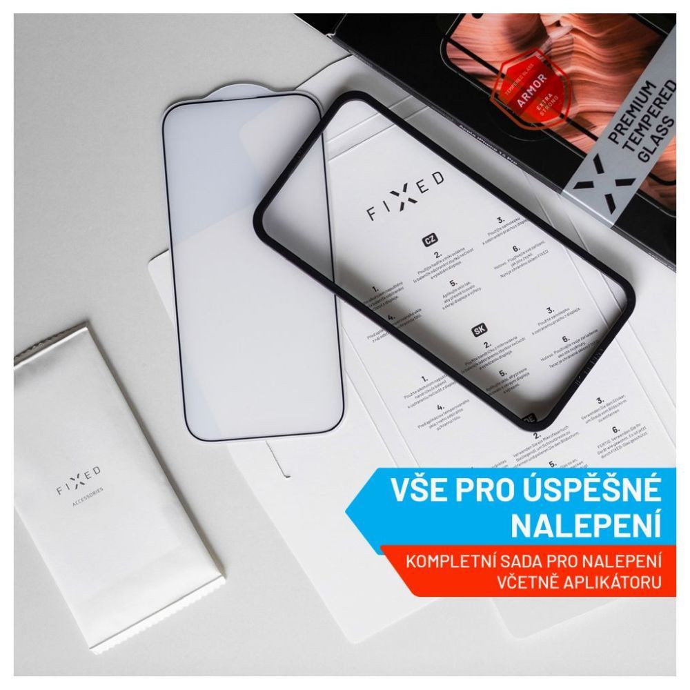 FIXED Rüstung Vollabdeckung 2,5D Gehärtetes Glas mit Applikator für Apple iPhone 15 Plus, schwarz