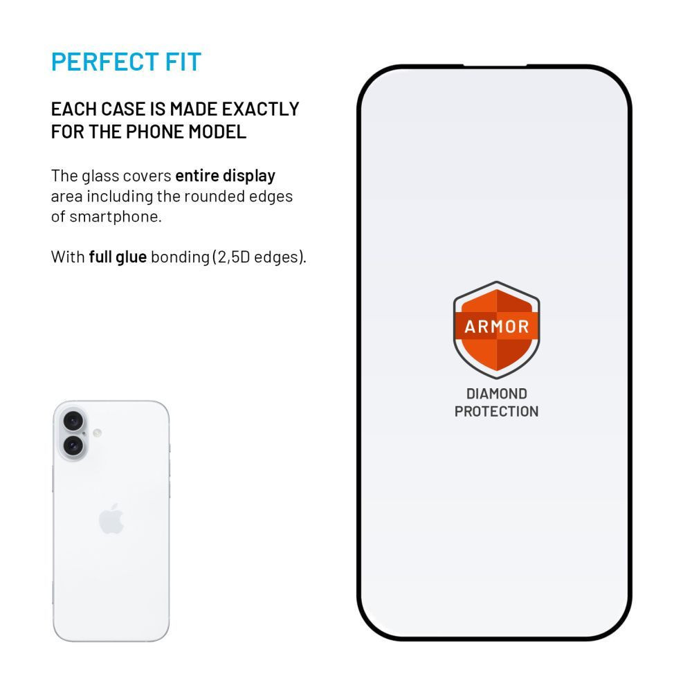 FIXED Extrem langlebiges gehärtetes Glas mit Staubapplikator für Apple iPhone 15 Plus / iPhone 16 Plus, Schwarz