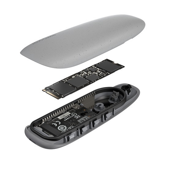 Externe ASUS COBBLE Gehäuse für m.2 NVMe SSD mit USB3.2 Typ-C Anschluss in Grau.