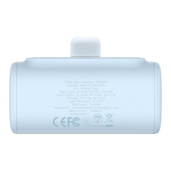 Baseus Kompakte Schnellladepowerbank 5000 mAh, 20W mit iPhone-Anschluss, Blau