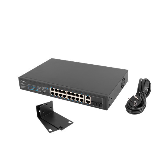Lanberg Switch ohne Management, 16x 100Mb PoE+/ 2x 1GB/1X SFP, Rack (250W)