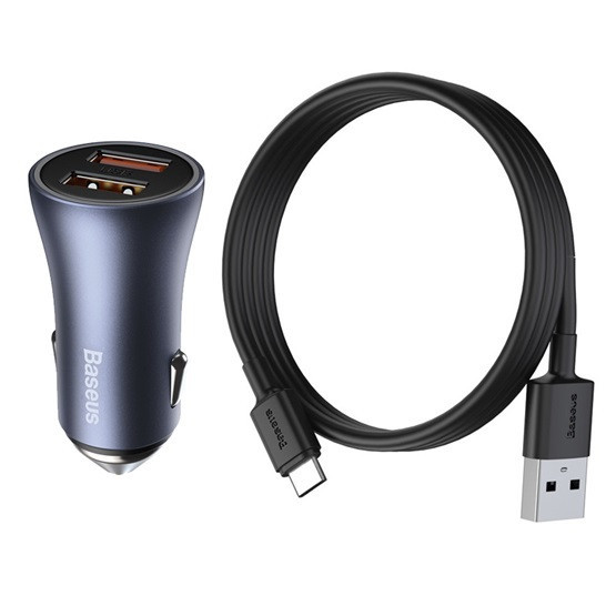 Baseus Golden Contactor Pro Auto-Schnellladegerät 40W, 2×USB Typ-A, Grau + 100W USB, 1m Kabel